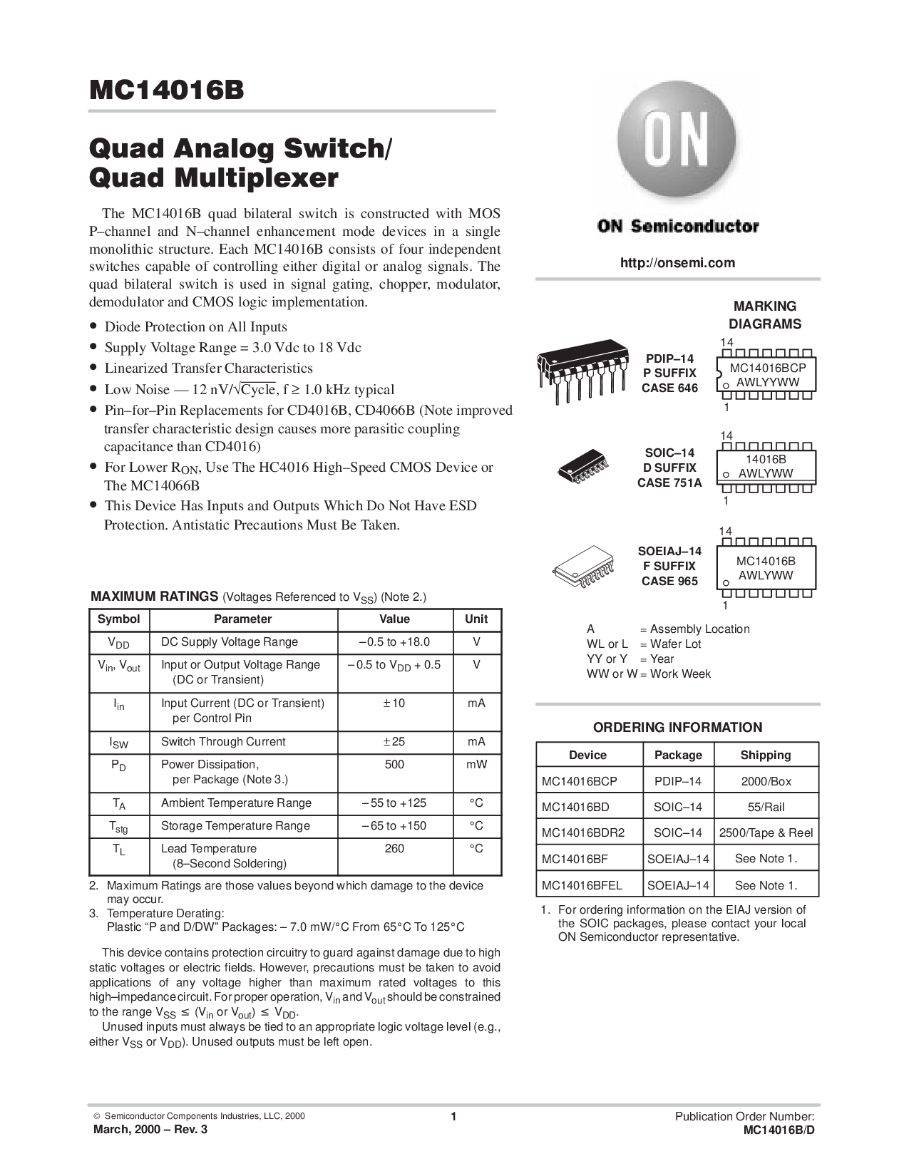 mc14016bdr2g 最低价格1.30元 ,最高价格1.60元 ,平均价格 1.45元